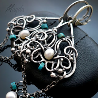 Sea Gypsy - perełki słodkowodne i Swarovskiego z turkusami stabilizowanymi. Nie za długie, dyndające, idealne do letnich sukienek:)